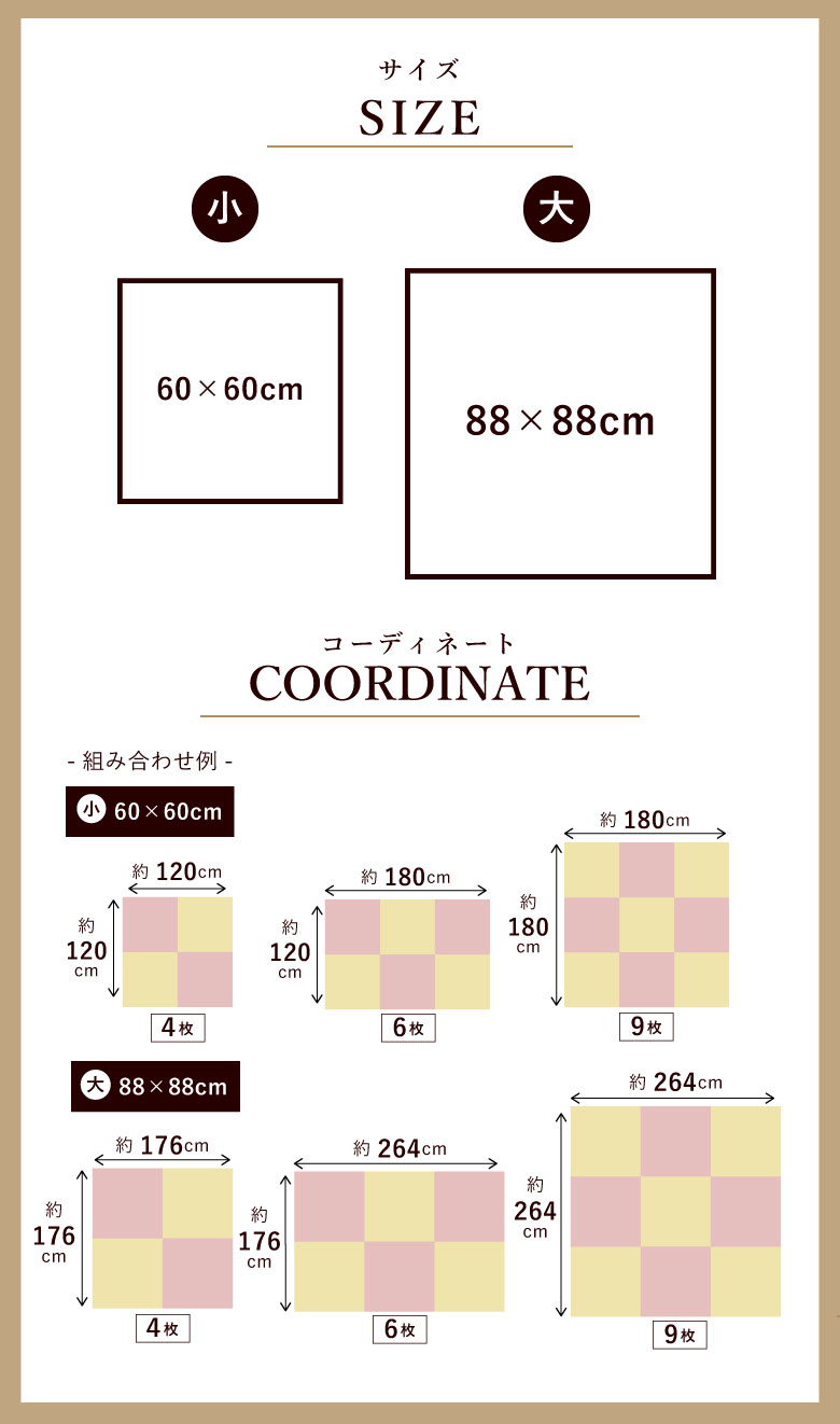 60x60cm 厚み1.6cm 重量1.2kg |